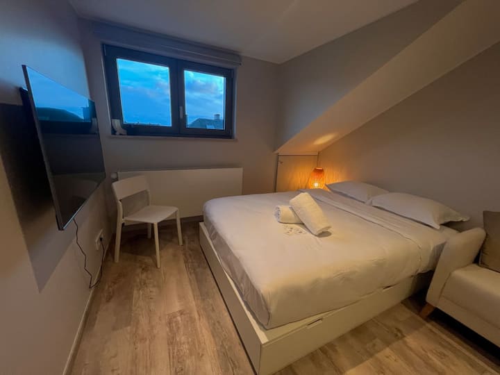 Estúdio loft mobilado na Graça, a minutos do centro. Sala/quarto em open space, kitchenette equipada e WC moderno. Ideal para estadias curtas.